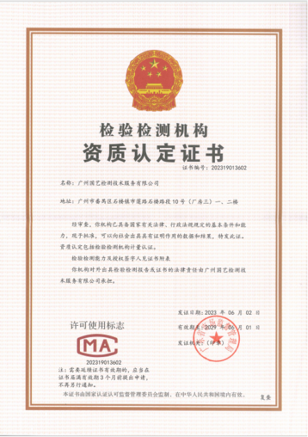 國藝檢測CMA資質(zhì)證書
