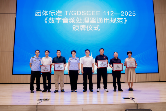 會(huì)議結(jié)束后,廣州市市場(chǎng)監(jiān)管局標(biāo)準(zhǔn)化處副處長(zhǎng)房鵬飛、番禺區(qū)市場(chǎng)監(jiān)管局副局長(zhǎng)蔣麗娟、標(biāo)準(zhǔn)化科科長(zhǎng)張小鋒為團(tuán)體標(biāo)準(zhǔn)《數(shù)字音頻處理器通用規(guī)范》主要起草單位代表頒發(fā)榮譽(yù)牌匾。整場(chǎng)活動(dòng)主題鮮明、內(nèi)容充實(shí)、成果豐碩,不僅全面展示了番禺區(qū)標(biāo)準(zhǔn)化工作的卓越成就,更凝聚了社會(huì)各界對(duì)標(biāo)準(zhǔn)化事業(yè)的共識(shí)與合力。